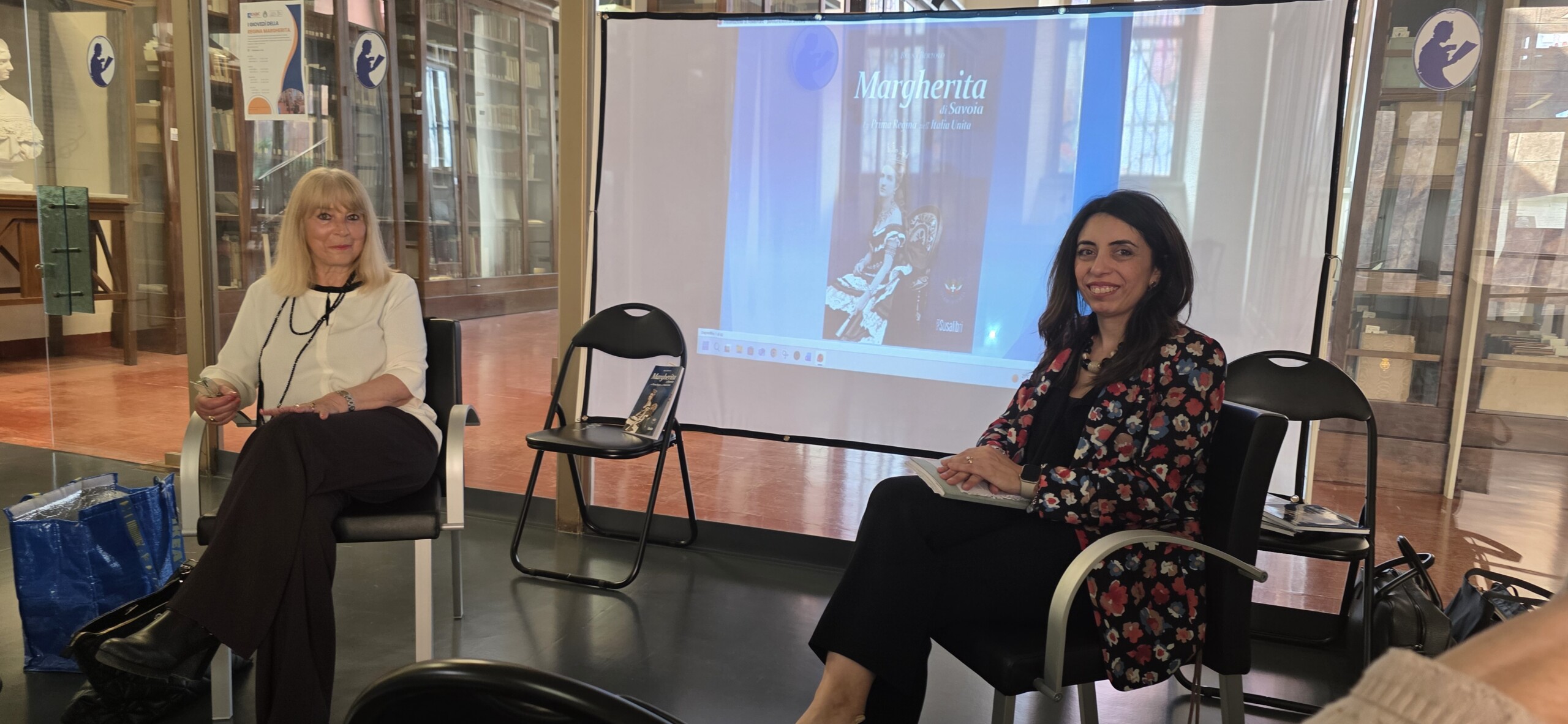 Alle ore 17 si è poi svolta da parte della autrice BRUNA BERTOLO la presentazione del libro: MARGHERITA DI SAVOIA: LA PRIMA REGINA NELL’ITALIA UNITA, accompagnata dalla proiezione di Immagini sul tema.