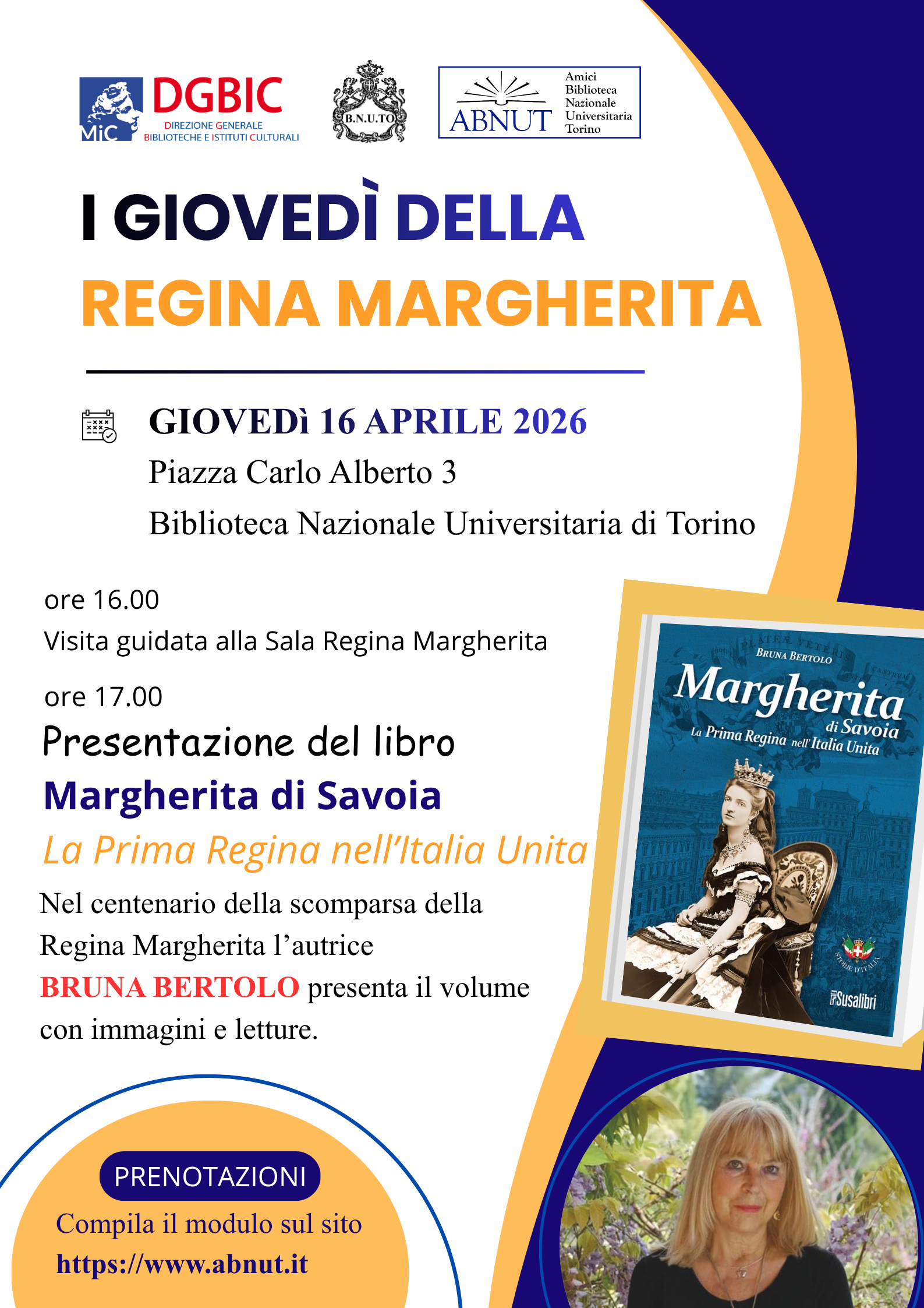 L’associazione Amici della Biblioteca Nazionale Universitaria organizza una visita accompagnata dalla volontaria Gabriella Franco alla biblioteca della Regina Margherita il giorno giovedì 7 Maggio 2026 alle 10,30.